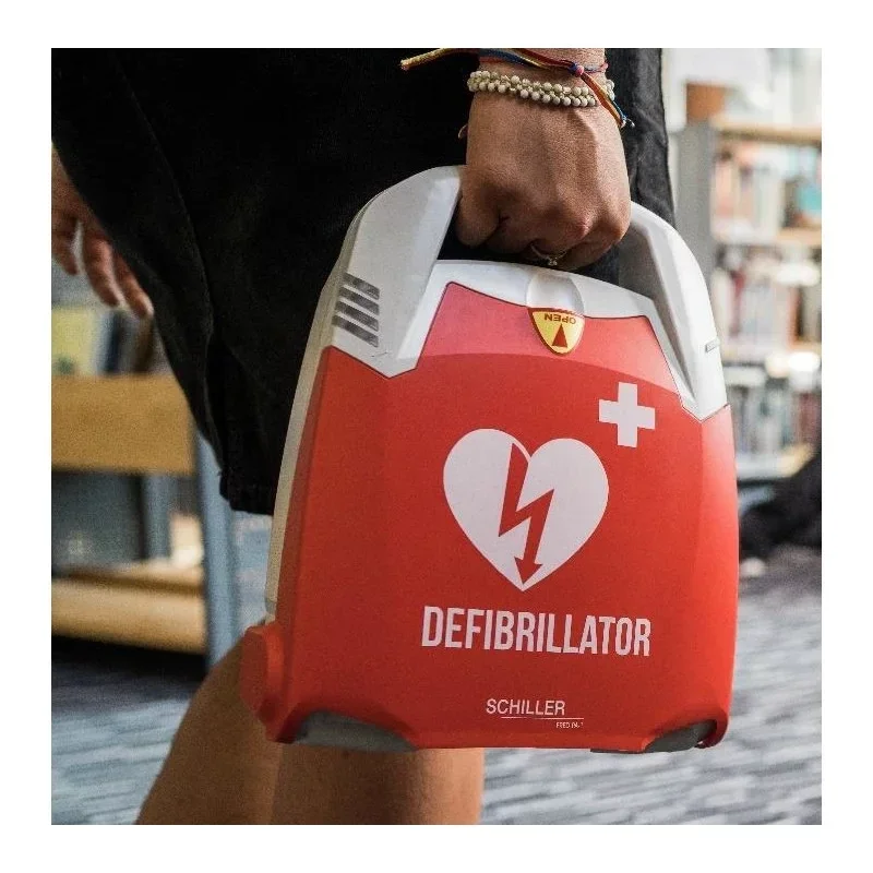 Défibrillateur, matériel oxygène, sac de premier secours, extincteurs etc.